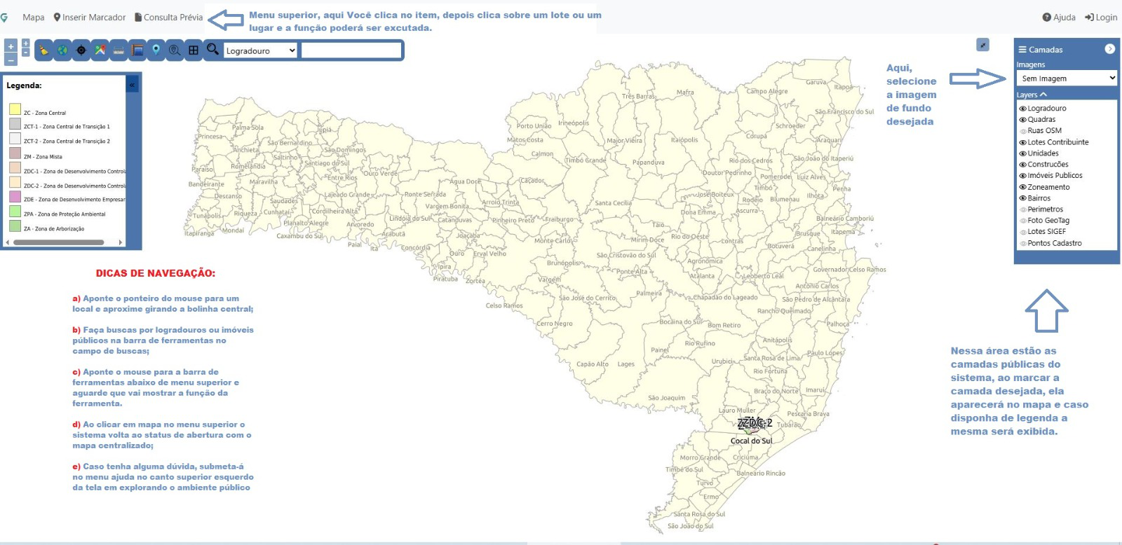 Bem vindo ao Sistema de Geoprocessamento da Prefeitura de Cocal do Sul.
